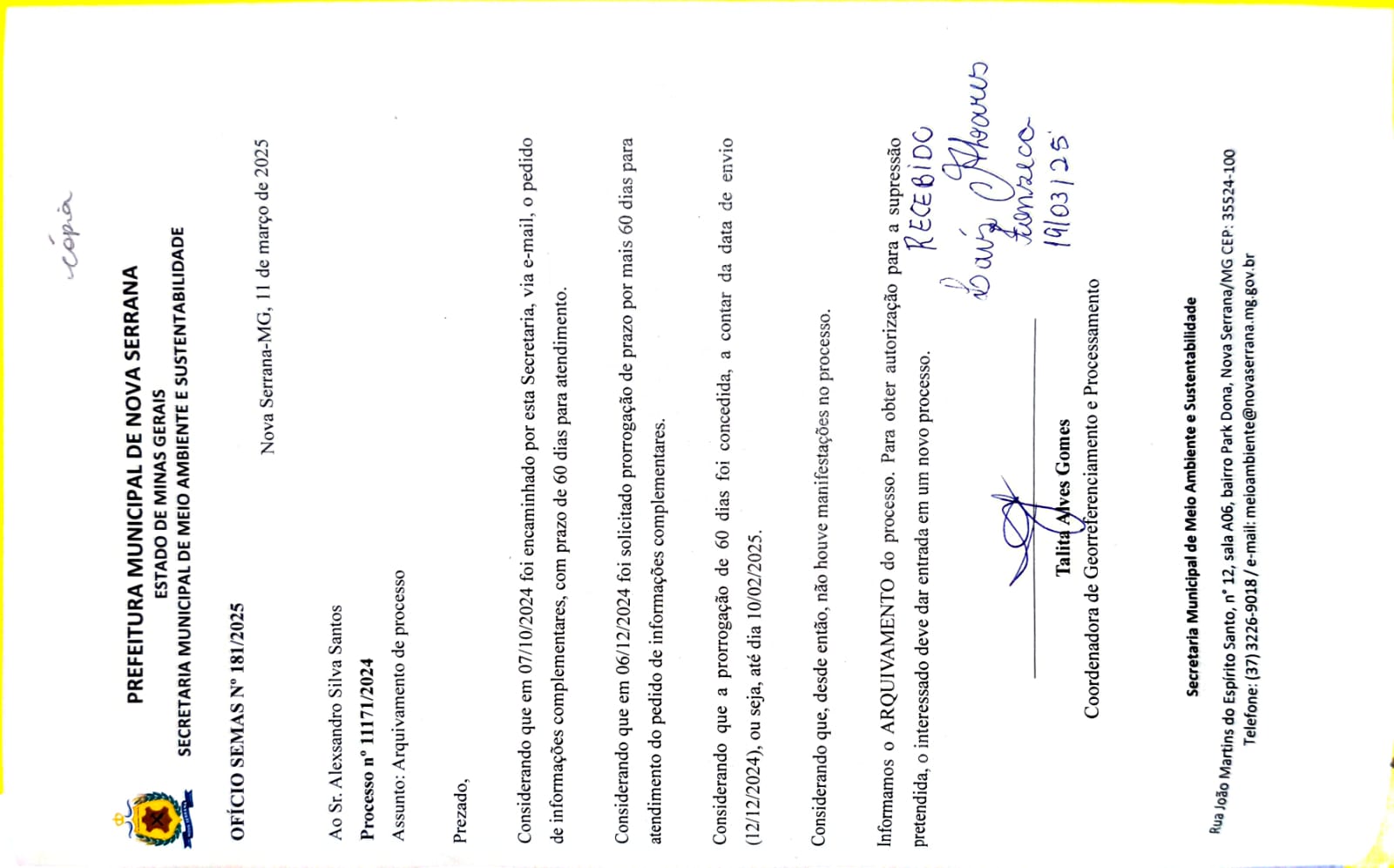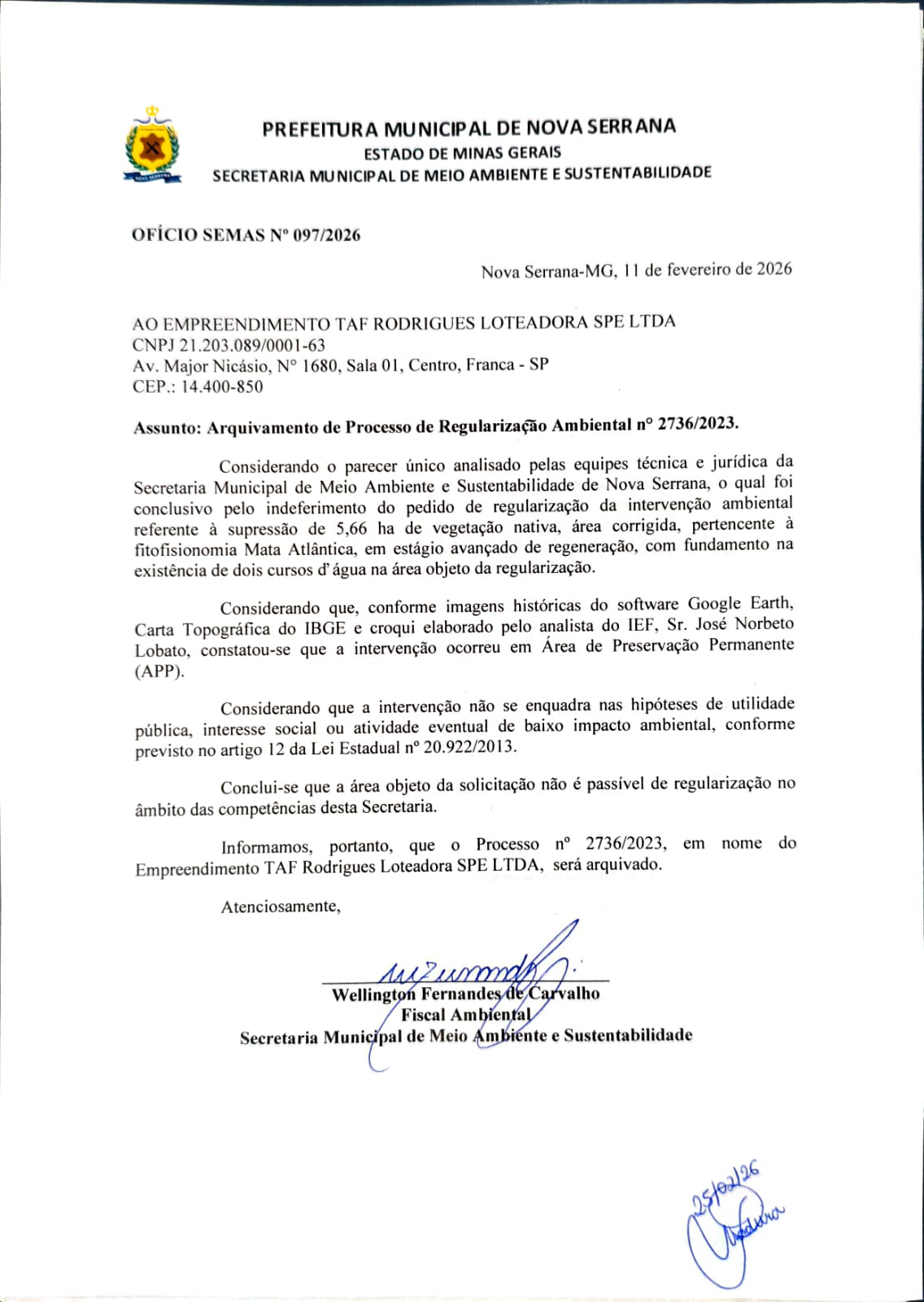 | Prefeitura Municipal de Nova Serrana | Nova Serrana | TAF xxxxxxx xxxxxxx xxxxxxx xxxxxxx | 21.2XX.XXX/XXXX-63 | Loteamento Bairro José Rodrigues | Supressão de cobertura vegetal nativa, com ou sem destoca, para uso alternativo do solo | Cerrado | 002736/2023 | indeferido | 15/03/2023 | ||||||||