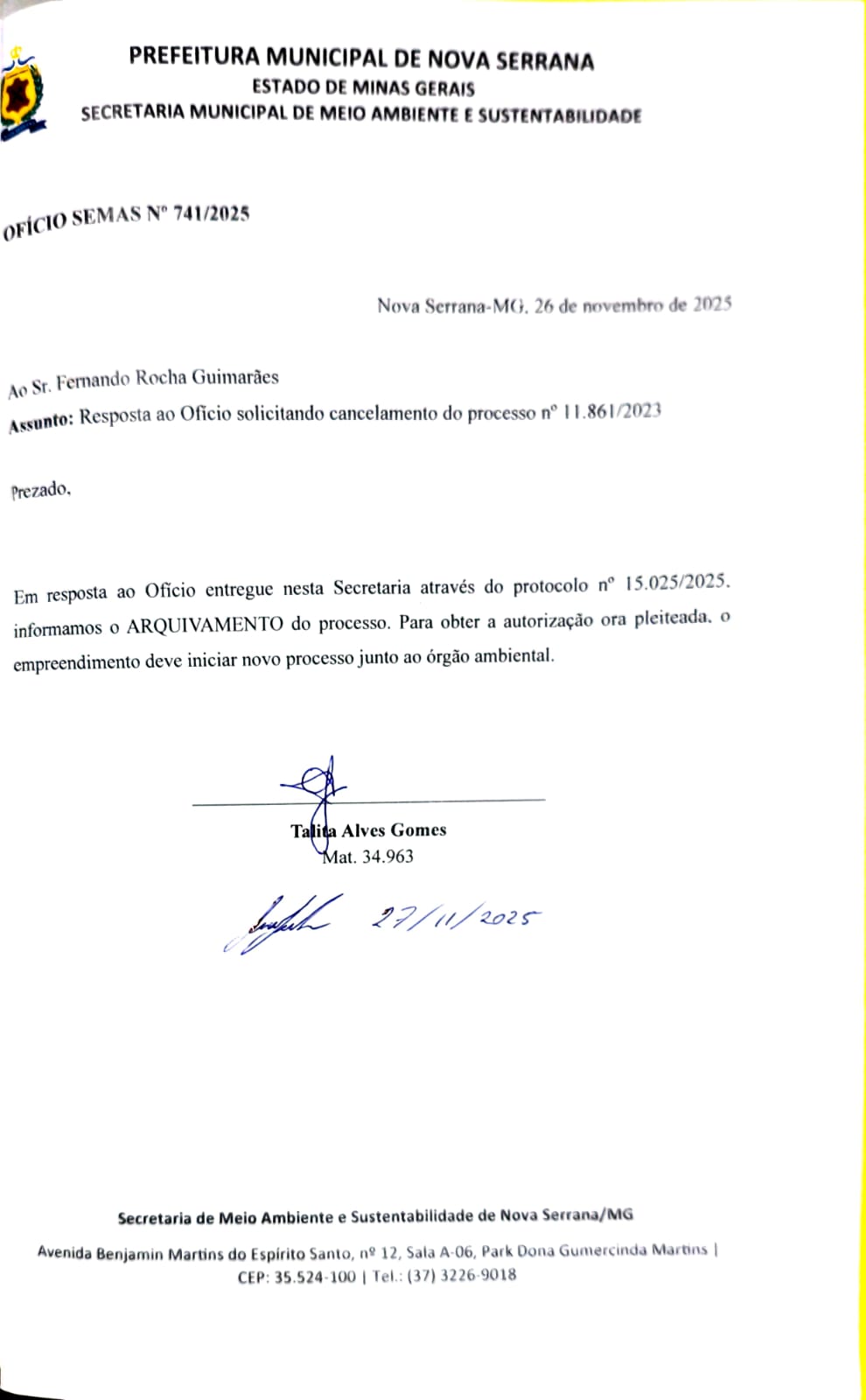 | Prefeitura Municipal de Nova Serrana | Nova Serrana | Eduardo xxxxxxx xxxxxxx xxxxxxx | 031.XXX.XXX-89 | Fazenda Canoas | Corte ou aproveitamento de árvores isoladas nativas vivas | Cerrado | 000095/2024 | 26/06/2025 | 2025 | Junho | deferido | 11/01/2024 | 510.939 | 7.798.986 | 23 | ||